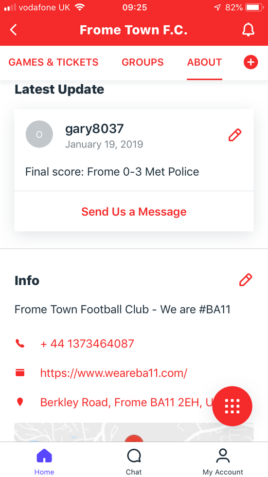 Groups Upload your photos and latest experiences from following Frome Town F.C. for all to share and enjoy. About See the latest updates from the club and details on how to contact the club. Chat